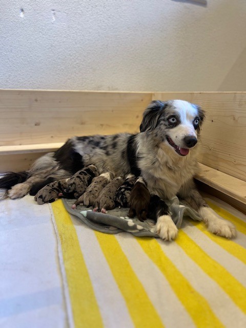 Mutter und Welpen sind wohlauf und wir können es kaum erwarten, sie alle kennenzulernen. Bleibt dran für weitere Updates und Bilder von den neuen Familienmitgliedern!