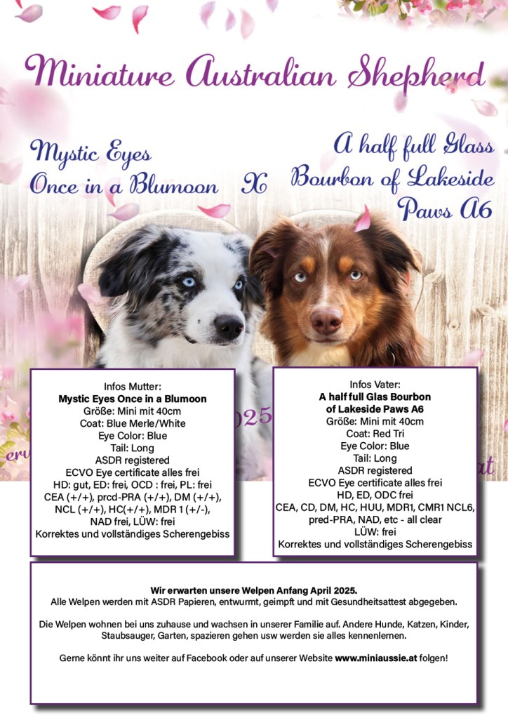 Wir freuen uns sehr über euer Interesse an einem unserer kleinen Mini Aussie Welpen! Jeder einzelne von ihnen ist mit viel Liebe aufgezogen, bestens sozialisiert und bereit, eines Tages in ein liebevolles Zuhause zu ziehen. Damit das neue Familienmitglied wirklich gut bei euch ankommen kann, möchten wir ein paar wichtige Punkte mit euch teilen: